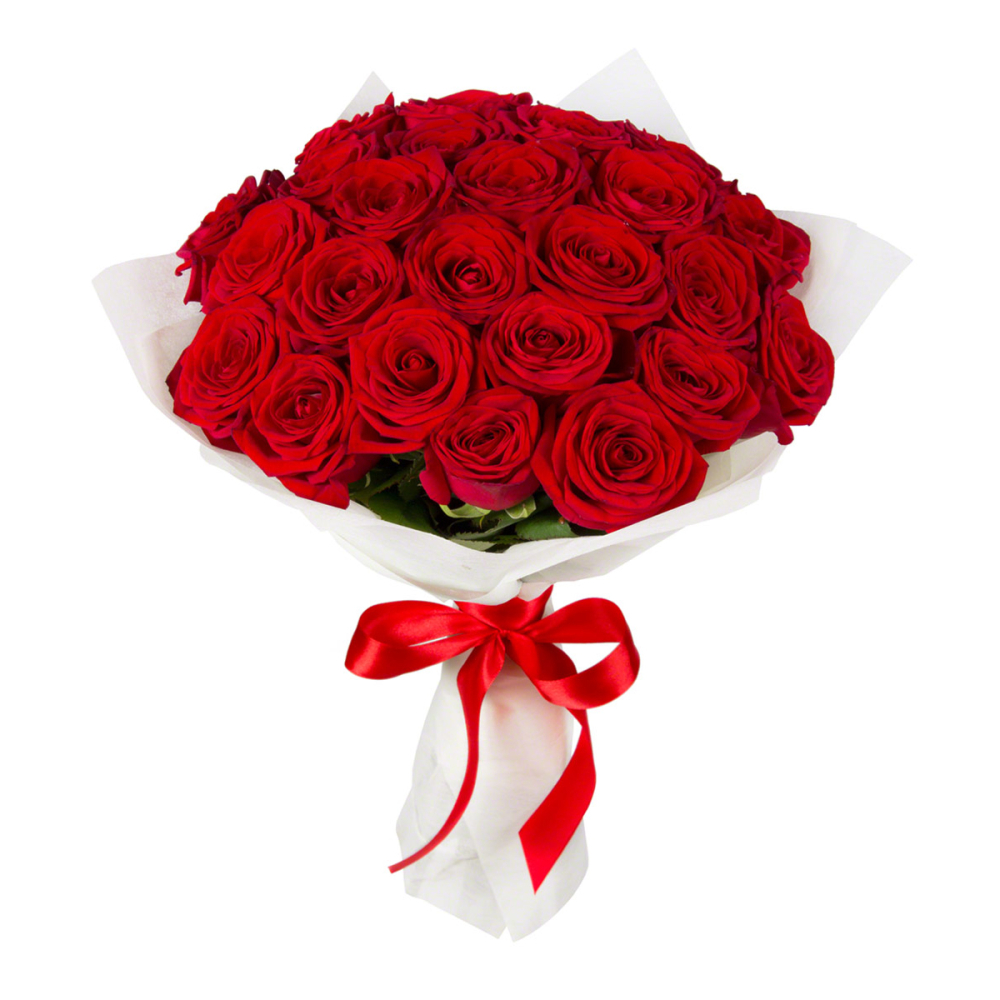 Букет из 25 красных роз в фетре